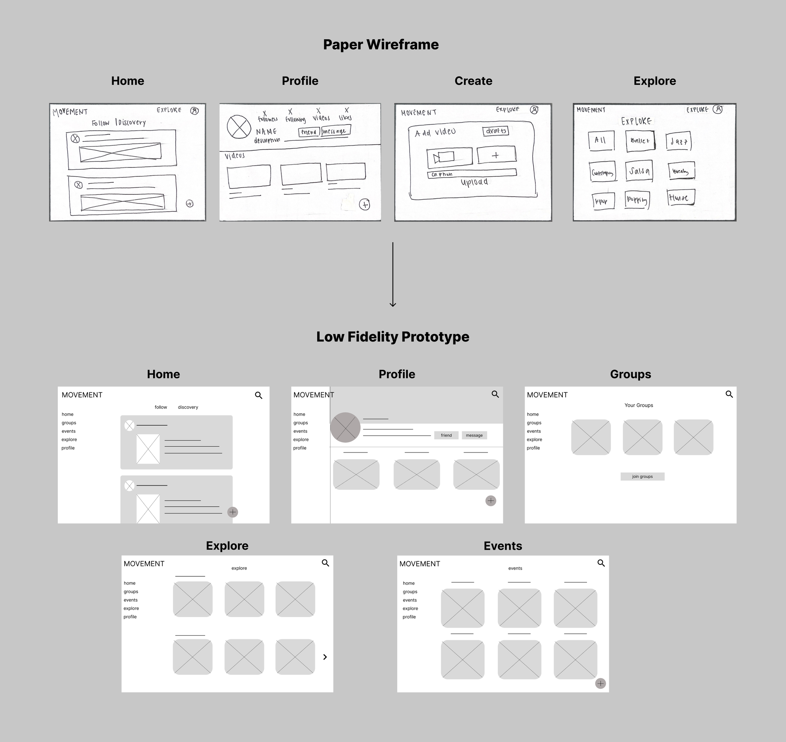 2. The ‘Community’, ‘Event’ and ‘Explore’ pages seemed redundant, so I got rid of the ‘Explore’ page since some information overlapped with ‘Community’ and ‘Events’, and I couldn't categorize it efficiently/make it organized.